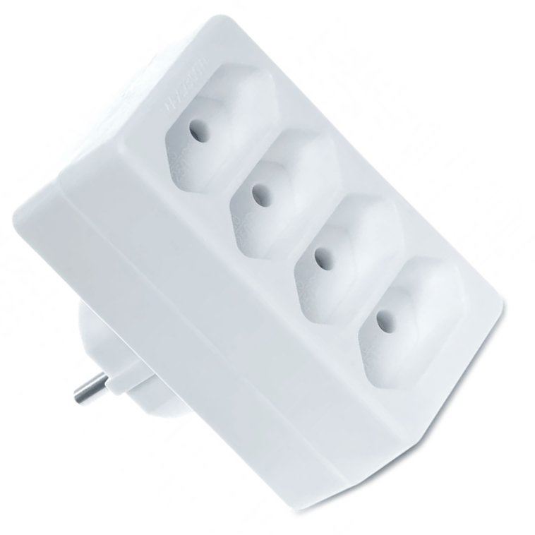 Rozgałęźnik elektryczny, trójnik do gniazdka elektrycznego 230V, wtyczkowy 4 gniazda b/u na wtyk płaski