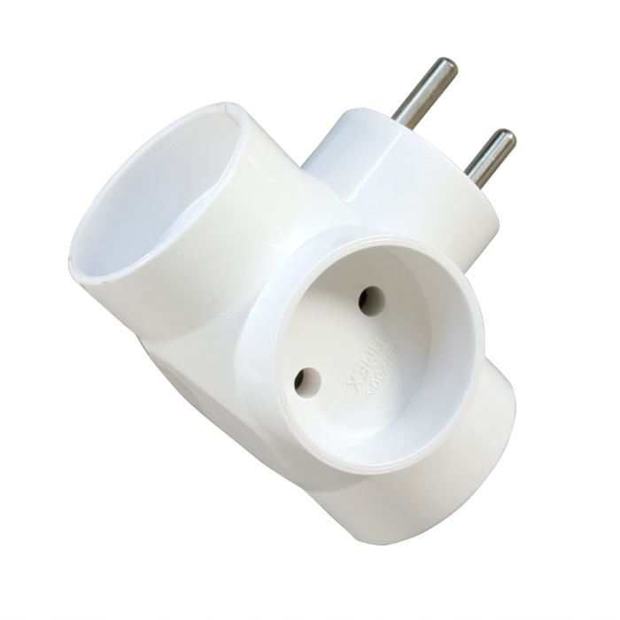 Rozgałęźnik elektryczny, trójnik do gniazdka elektrycznego 230V, 3x2P biały R-30 bez uziemienia 3 gniazda