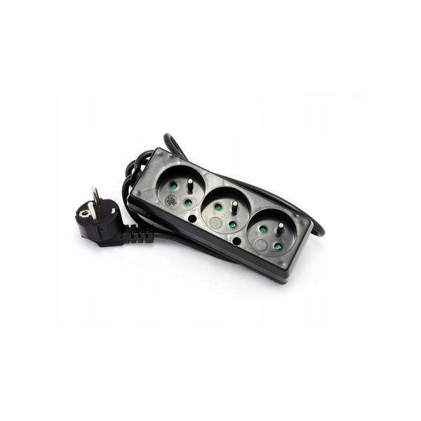 Przedłużacz stały z trzykrotnym gniazdem wtyczkowym 3x2P+Z 10A 3m czarny