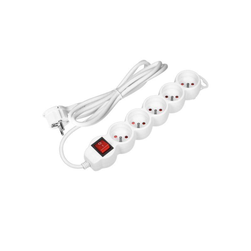 Przedłużacz 5 gniazd 5x2P+Z 5m 3x1,5 biały