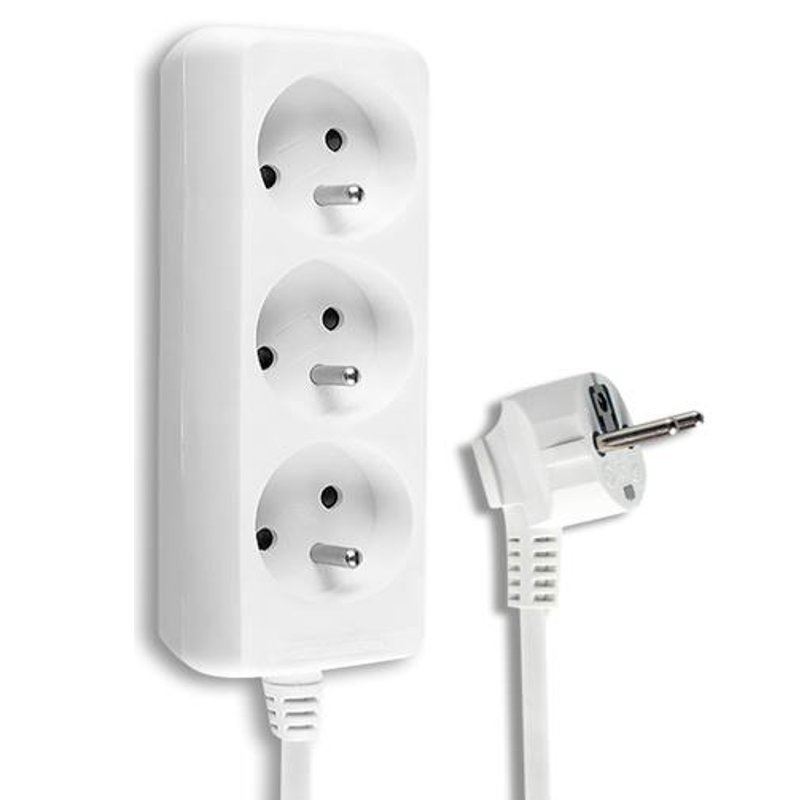 Przedłużacz 3 gniazda z uziemieniem 3m biały
