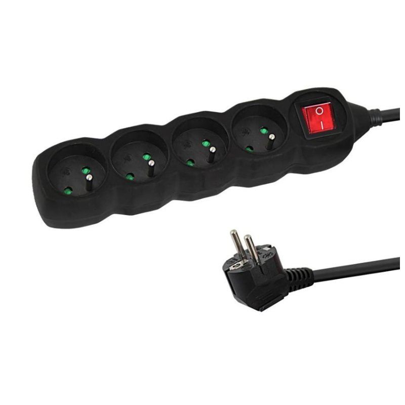 Listwa 4 gniazda z uziemieniem i wyłącznikiem czarna