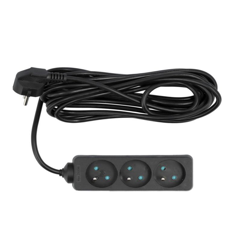 Przedłużacz 3 gniazda z uziemieniem 5m czarny