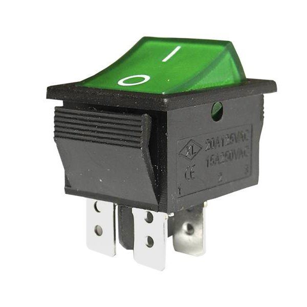 Przełącznik kołyskowy włącznik zielony duzy ON/OFF 230V 15A 4 PIN, (odpowiednik KCD4, MK621)