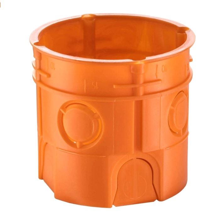 Puszka podtynkowa pogłębiana pomarańczowa Z 60DFw 60mm z wkrętamiPuszka instalacyjna o średnicy 60mm podtynkowa głęboka wykonana jest z tworzywa sztucznego o wysokiej wytrzymałości mechanicznej.