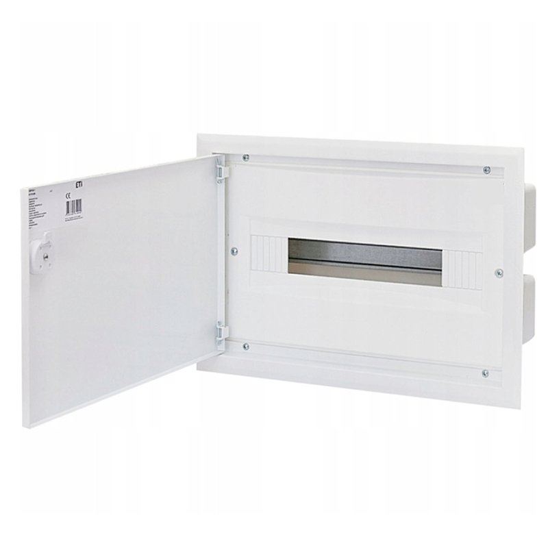 Rozdzielnica podtynkowa z metalowymi drzwiami mająca zastosowanie w budownictwie mieszkaniowym i przemysłowym do montażu aparatury modułowej.