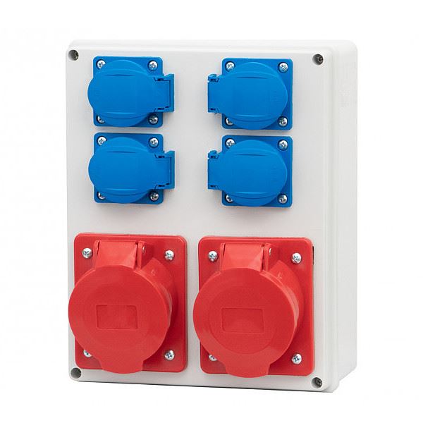 Rozdzielnica R-240 natynkowa wyposażenie: 2 gniazda 16A 5P 3-fazowe + 4 gniazda 230V z klapką