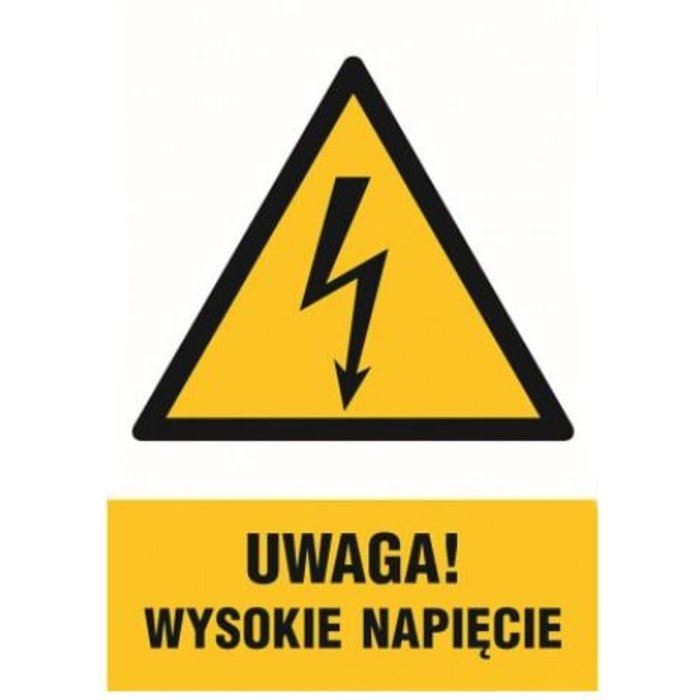 Tabliczka ostrzegawcza z opisem: Uwaga wysokie napięcie, wymiary 148x210, Płyta PCV 1mm