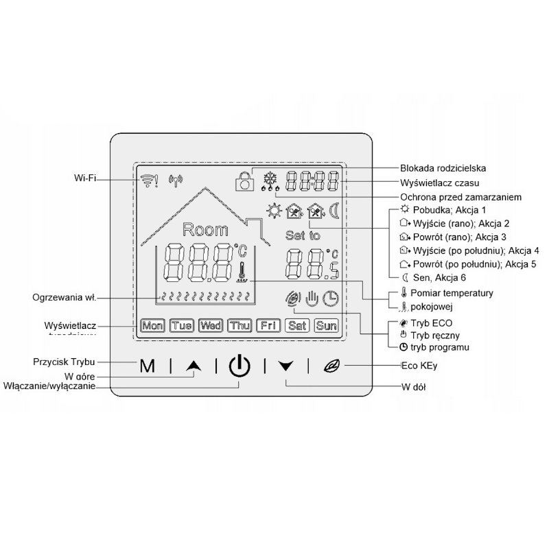 Termostat pokojowy, cyfrowy LCD WIFI Czarny M2