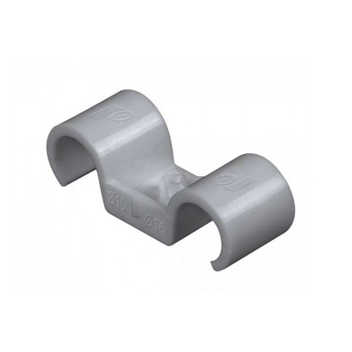 Uchwyt plastikowy podwójny 20mm do rur instalacyjnych posadzkowy wzmocniony PA /opak=50szt/
