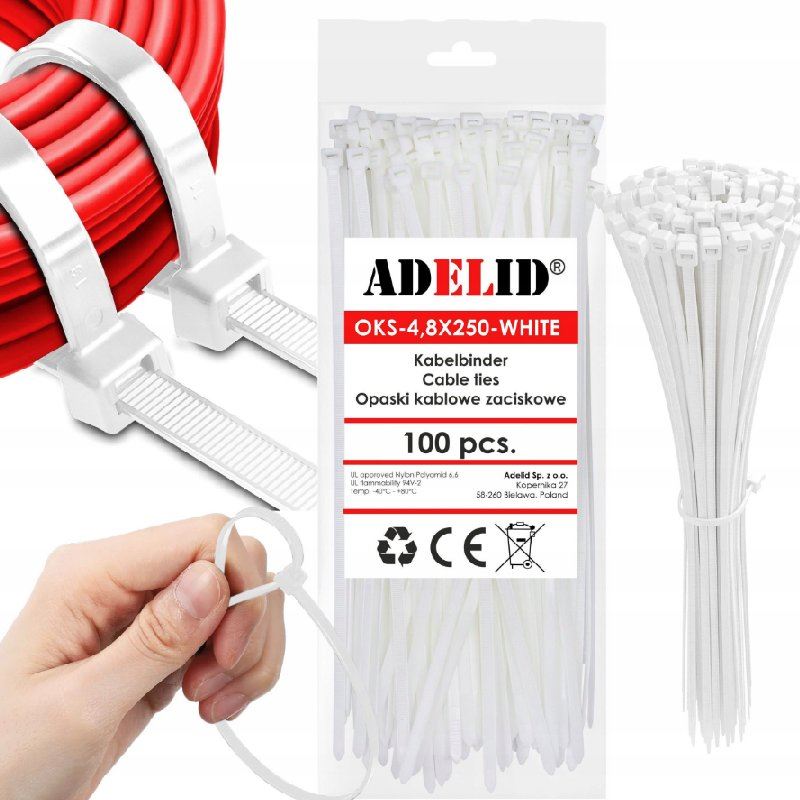 Opaska kablowa 250x4.8mm UV biała, opaski zaciskowe - opakowanie 100szt. / taśmy kablowe / opaski zaciskowe / trytytki