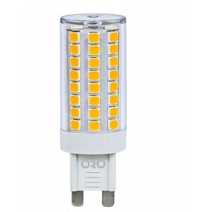 Żarówka LED ORO-G9-PETIT-4,8W-DW posiada oprawę typu G9, która sprawia, że można ją dopasować do kinkietów, spotów, reflektorków, lamp biurkowych, stołowych oraz niewielkich lampek nocnych. Dodatkową zaletą jest niewielki rozmiar i stosunkowo wysoka moc (4,8W).