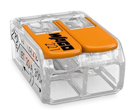 Szybkozłączka 2-przewodowa z dźwigniami 221-412 przeźroczysty WAGOdo 0.14 - 4mmZłączka do puszek instalacyjnych; do wszystkich rodzajów przewodów