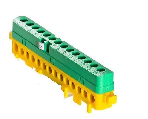 Listwa przyłączeniowa izolowana LPI-14 14x16mm zielono-zółta na szynę DIN TH35, skręcana 14 polowa