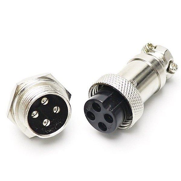 Złącze przemysłowe skręcane GX12-4 pin, zestaw: przykręcany do obudowy wtyk + gniazdo na kabel