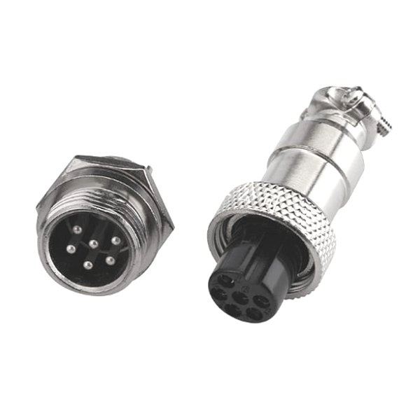 Złącze przemysłowe skręcane GX12-6 pin, zestaw: przykręcany do obudowy wtyk + gniazdo na kabel